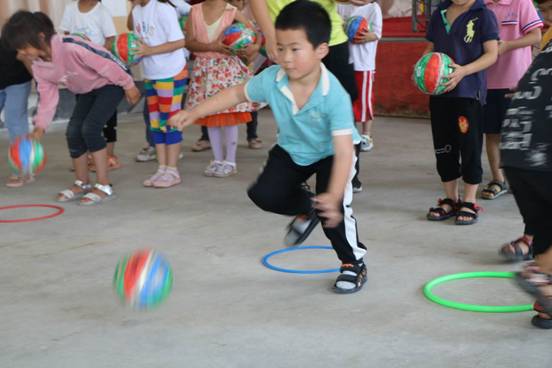 体育系分为三个志愿者服务小分队,第一分队为幼儿园和小学一年级的孩子上了两节课,孩子们手里拿着新球,开心地投入到课堂中去,气氛非常活泼。第二分队为幼儿园的孩子们进行“TGMD”幼儿基本运动技能测试,孩子们模仿老师的动作,高兴的表情中渗透着认真的态度。第三分队为糖果派对官方 的师生们测试身体体脂成分,先进的仪器让老师们跃跃欲试,面对测试结果,老师们有的表示要减肥,有的说要多吃一些高蛋白的食物。