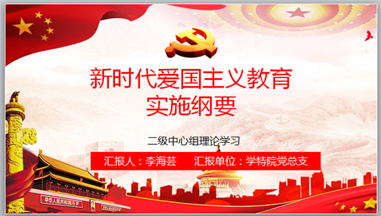 按照校党委、宣传统战部的统一部署,我院党总支二级理论中心组于5月13日下午开展线上学习活动,专题传达学习了《新时代爱国主义教育实施纲要》及《党委(党组)落实全面从严治党主体责任规定》。学院二级中心组全体成员以及三个支部的支部书记参加了学习。活动由党总支书记李海芸主持。