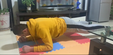 本次比赛是以身体素质的比拼为主,女生一分钟仰卧起坐,男生一分钟俯卧撑,青年组教职工平板支撑,中年组教职工亲子头上胯下传接球(物),老年组教职工头上胯下传接球(物)。在视频拍摄以及运动的过程中,全校师生积极参与,形成了你追我赶的运动氛围。虽然受到场地器材的限制,但是全校师生运动热情火热,出色完成自己项目的竞赛。