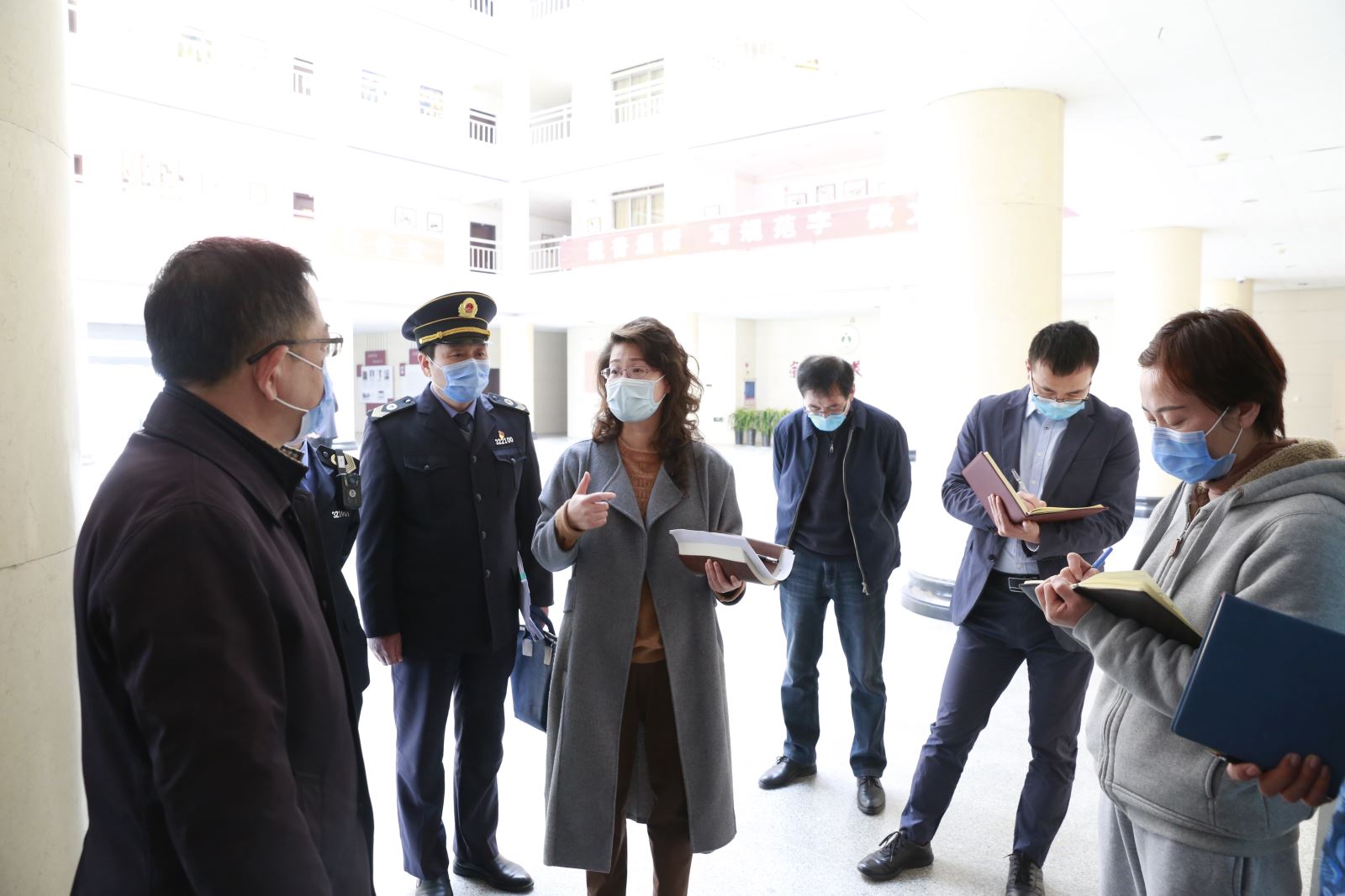 检查督导春季开学各项准备工作。副校长曹利群及相关处室负责人陪同检查。