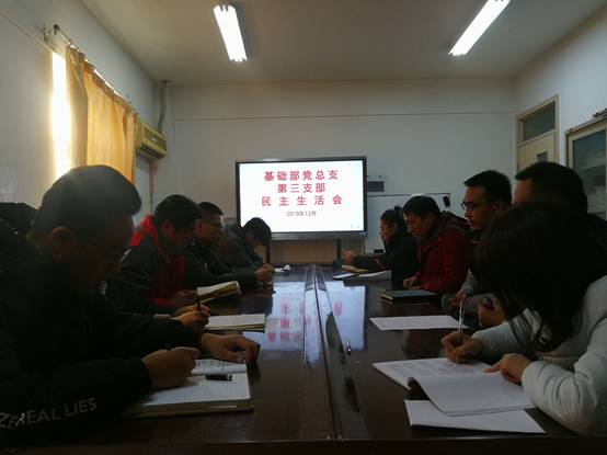 首先,刘伟书记介绍会前准备工作情况,对支部所有的党员进行谈心活动,了解各党员的工作、学习、生活等方面的情况,从支部党员和群众调研,充分了解支部党建的不足。然后刘伟书记代表支部对2019年度进行问题查摆,向大会述职,让各党员提出支部党建的意见和建议。其次,开展批评与自我批评,每位党员对自己在思想、学习、工作和生活方面的情况,对照《不忘初心,牢记使命》主题教育要求,着重从理想信念、宗旨意识、组织纪律、思想作风、廉洁自律、工作业绩等方面进行自查,客观、求实地回顾总结个人一年的基本情况,以党员的标准对照自己的言行,力求找出差距,明确方向,做到缺点不漏,有理有节。两个多小时的时间,每位党员都查摆了自己的问题,梳理了自己的奋斗方向。