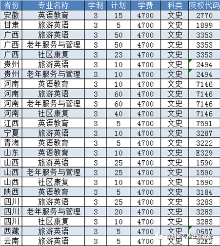 普通专科计划【331人】 院校代码:1232