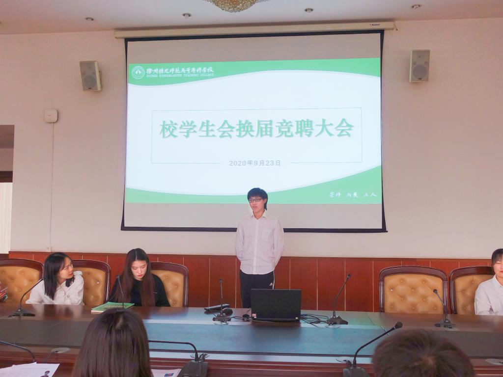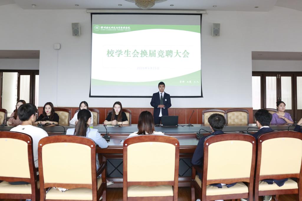 为深入贯彻落实共青团中央、教育部、全国学联下发的《关于推动高校学生会深化改革的若干意见》文件精神,进一步深化学生会改革,支持和引导学生会更好地服务青年学生成长成才,9月15日至9月21日,校学生会面向全校公开竞聘校学生会主席团、部长等主要学生干部,9月23日下午2:30,校学生会换届竞聘大会在洞山校区第二会议室召开,校团委副书记曾思其、戴笑笑、全体竞聘学生干部参与了本次大会,会议由曾思其副书记主持。