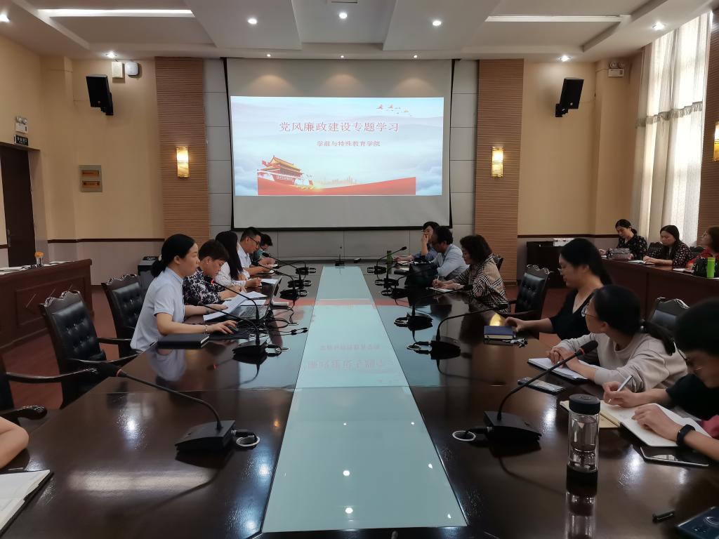 9月22日下午,学前与特殊教育学院开展党风廉政建设专题学习活动,组织全体教师专题学习了《中华人民共和国公职人员政务处分法》,以下简称(《政务处分法》)。活动由党总支书记李海芸主持。