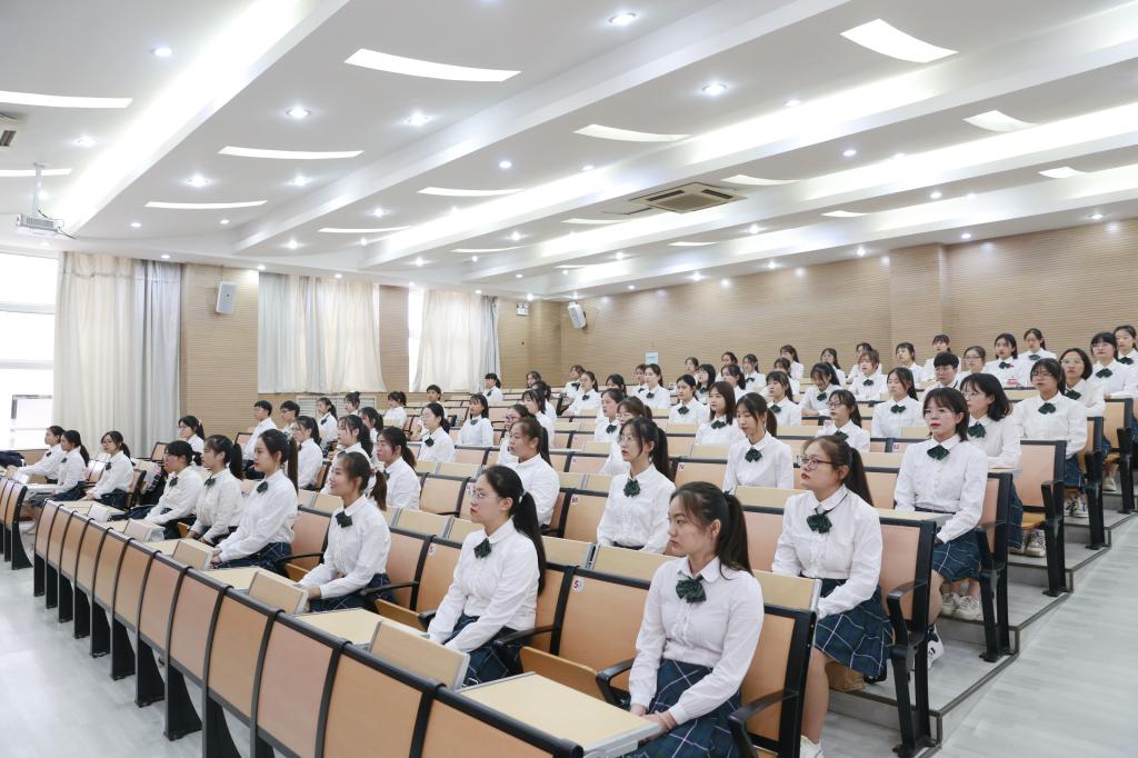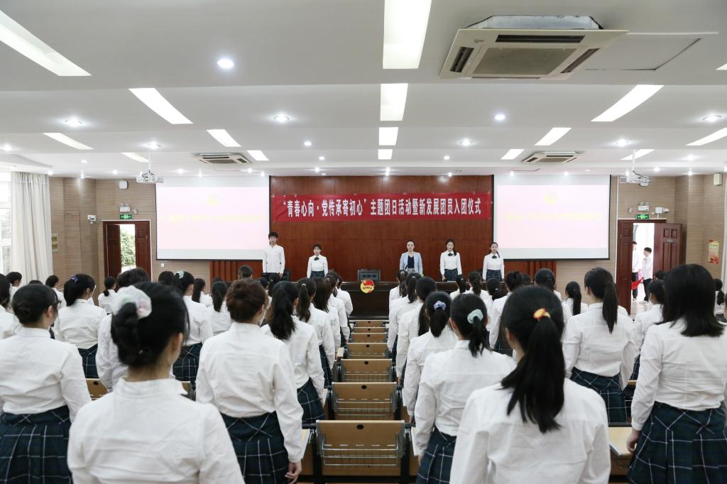 最后,校团员副书记曾思其对新加入中国共产主义青年团的团员表示了诚挚的祝贺。她勉励新入团的同学要做好党的助手和后备军,并提出三点希望:一是“筑牢一颗红心”,要坚定共产主义理想信念,坚定不移听党话跟党走;二是“守护一颗初心”,要不忘入团初心,牢记使命担当,勤奋学习,勇于实践,练就过硬本领;三是“坚持一份用心”,要甘于奉献,做好榜样,提高责任意识、担当意识。她鼓励团员青年做阳光自信的人,用青春的光芒去照耀他人,努力向党组织靠拢,做合格共青团员。