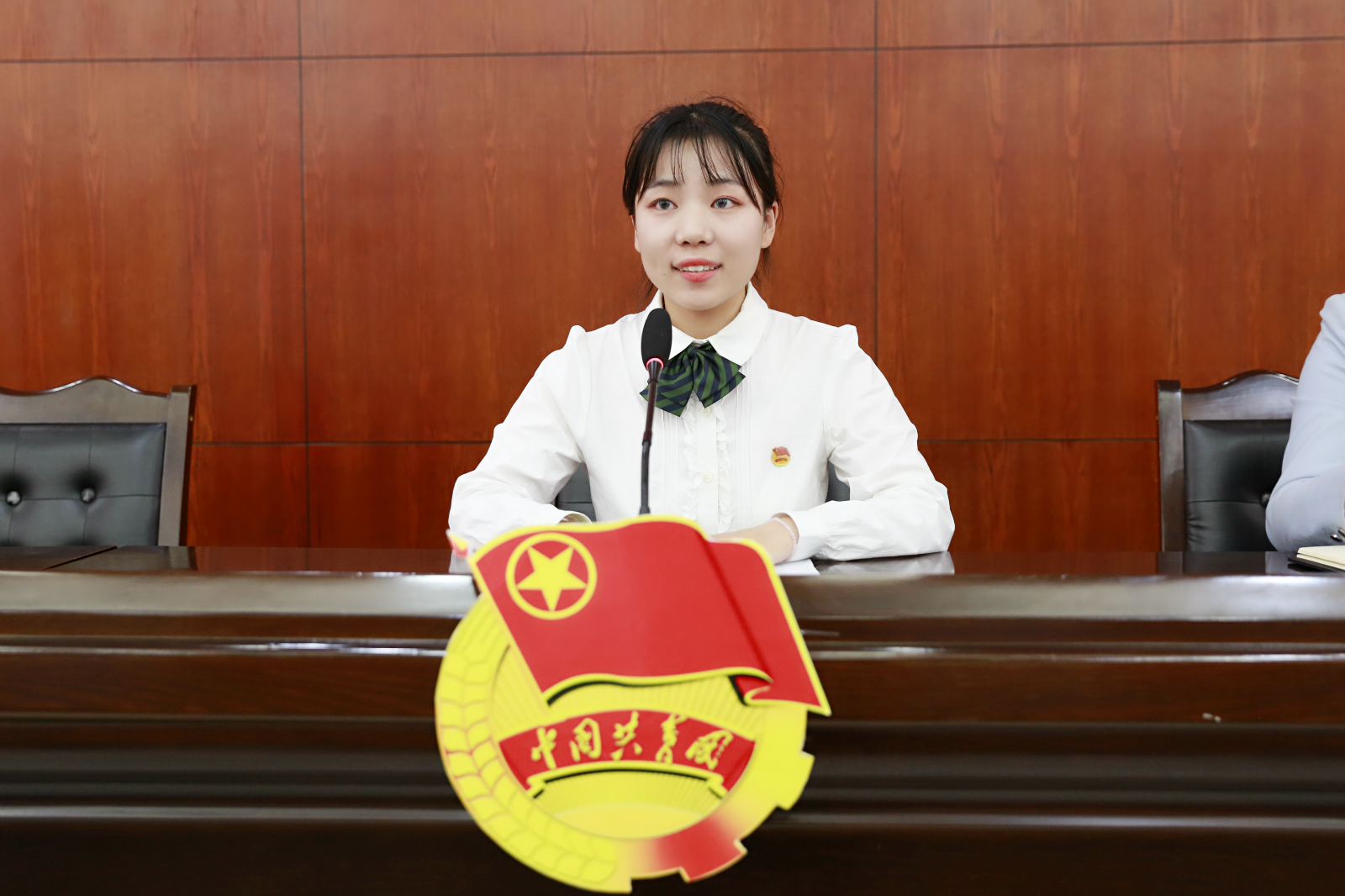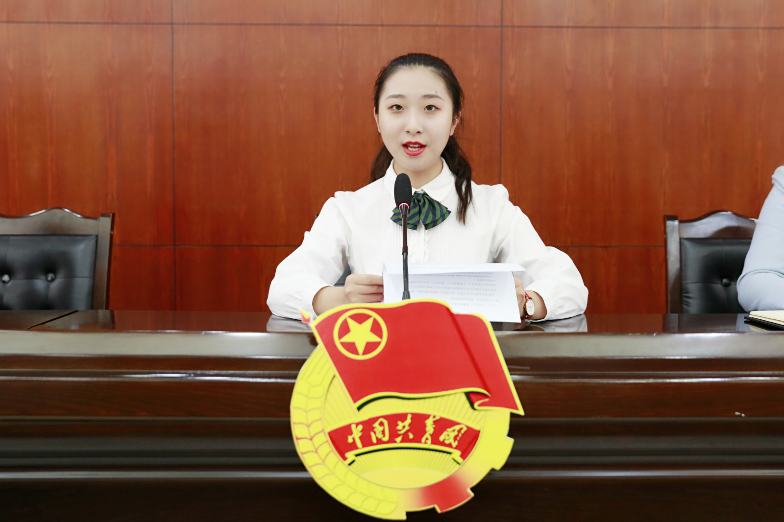 校广播站站长、17级五年制8班刘嘉雯同学代表新发展团员发言,表达了自己成为一名共青团员的光荣和自豪之情。她表示作为一名共青团员要爱党爱国,成为有坚定理想信念、高尚道德情操、充满集体荣誉感、练就过硬本领的新时代合格共青团员。校学生会主席、18级学前教育5班袁柳同学作为老团员代表发言,她讲述了自己在共青团引领下的奋斗成长故事,号召大家“别人不做的我来做,人人都做的争先做”,用实际行动践行共青团员的光荣称号!