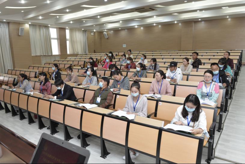 开班典礼的最后,曹校长和陈局长一起为本次培训班授班旗,尼玛措姆、德吉卓嘎两位老师作为学员代表接班旗。庄重而热烈的授旗仪式使学员们受到极大的鼓舞。