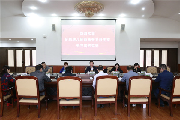 的热情接待表示感谢,并就合肥幼专在40年校庆之际构建长三角区域学前教育联盟(职业教育)的规划方案作了说明。随后,双方还就内地民族幼师生培养、学前教育专业建设等问题进行了深入交流。