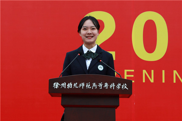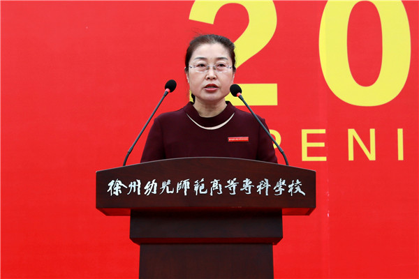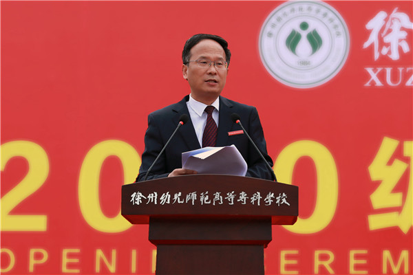 开学典礼在庄严的国歌声中拉开序幕。蔡飞校长代表全校师生员工向1654名新同学表示热烈欢迎和衷心祝贺。他指出,2020年是一个不平凡的年份,同学们来到徐州幼专,开启新的人生旅程,担负着特别的使命,肩抗着沉甸甸的责任。蔡校长对2020级新生提出殷切期盼:一要深刻领会,弘扬伟大抗疫精神;二要志存高远,立志成为大国良师行业翘楚;三要修身养性,涵养高尚品德;四要刻苦学习,练就扎实学识高超本领;五要取法乎上,努力向大师学习。希望同学们在徐州幼专这个大熔炉里,不断得到淬炼,不断提升道德境界,养成深厚专业素养,为未来的专业发展,为创造幸福人生奠定坚实基础,早日成长为优秀的人民教师和杰出应用型人才。