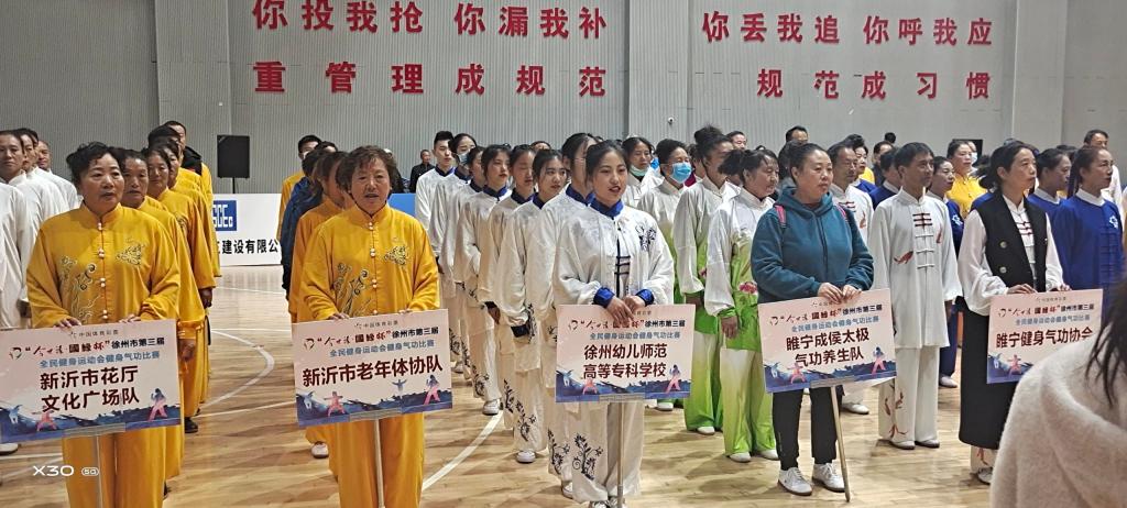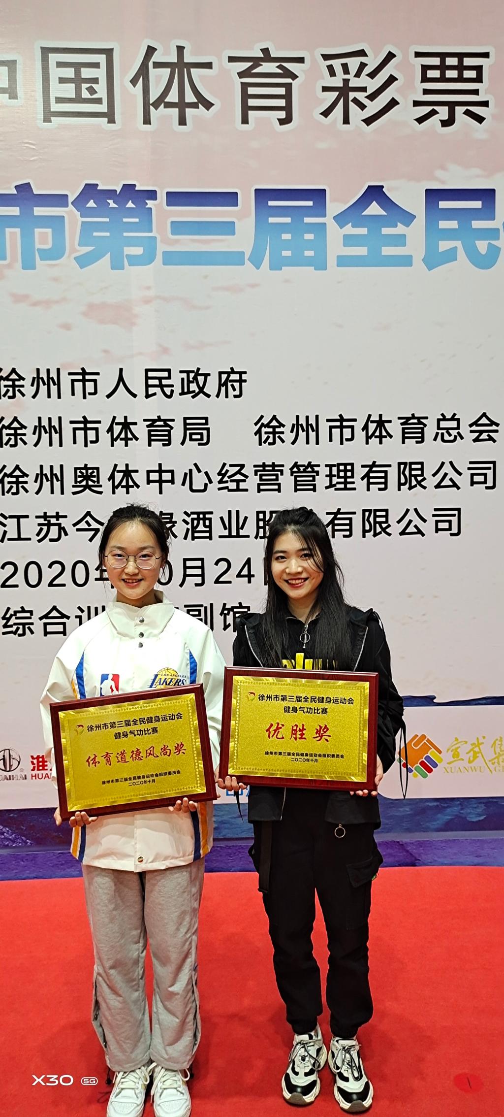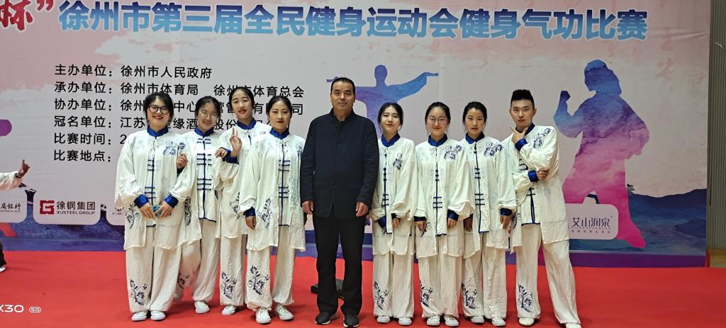 10月24日,由徐州市政府主办,市体育局、市体育总会承办的徐州市第三届全民健身运动会健身气功八段锦比赛在奥体中心综合馆举行。全市22支代表队160余名健身气功运动员参赛。糖果派对官方 代表队由靖国梁老师担任领队、周胜利老师担任教练,队员们经过刻苦训练,在比赛中不畏强手,奋力拼搏,稳定发挥,最终获得了总分第二名,荣获优胜奖和体育道德风尚奖。这是糖果派对官方 在全民健身运动会和校园八段锦推广中的又一次突破。