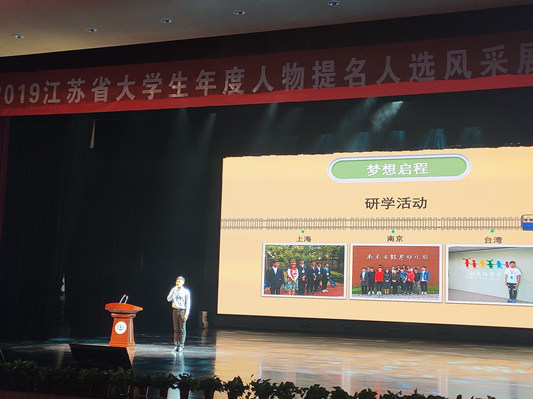 学生梁状获“2019江苏省大学生年度人物”提名奖。