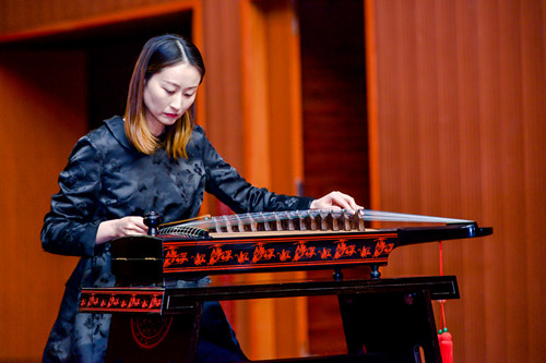 马亚琼副教授展示了“沛筑”作品《渔舟唱晚》,赢得在场师生的热烈掌声。马老师曾向郝敬春先生学艺,在郝先生的悉心指导下,她不仅在沛筑演奏技法上取得了长足进步,也为沛筑艺术的传承与推广做出了贡献。