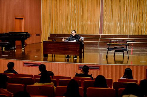 11月26日下午,音乐舞蹈系邀请中国音乐家协会会员、中国民间文艺家协会会员、中国发明协会会员、中国民族器乐学会理事、沛县汉皇乐器有限公司董事长郝敬春先生来校举行专题讲座。参加讲座的有音乐舞蹈系党总支书记陈繁、副主任闫兵以及部分师生代表。讲座由闫兵副主任主持。