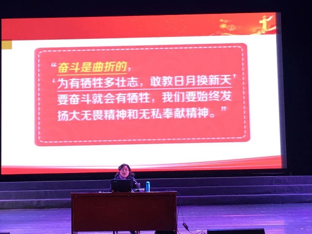线下部分,分别由马玲、刘芳铭、孙玉柱、张丽萍四人进行了4次专题党课。两位校领导分别以《党的最高纲领和现阶段任务》《大浪淘沙话沉浮》为题,全面细致地解读了党的最高纲领,生动分析了党的现阶段主要任务,并以出席中共一大13位代表的人生轨迹为主线,勉励全体学员坚定共产主义信念,不忘初心,牢记使命。