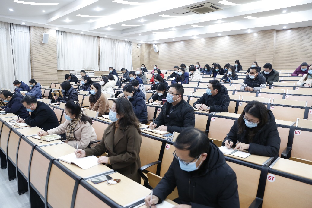 在碧螺校区学术报告厅召开期末工作总结会。校领导及全体干部参加会议。会议由校党委书记王晓三主持。