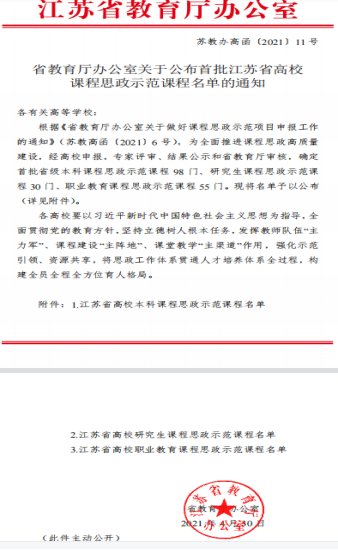 近日,江苏省教育厅发布《关于公布首批江苏省高校课程思政示范课程名单的通知》(苏教办高函〔2021〕11 号),糖果派对官方