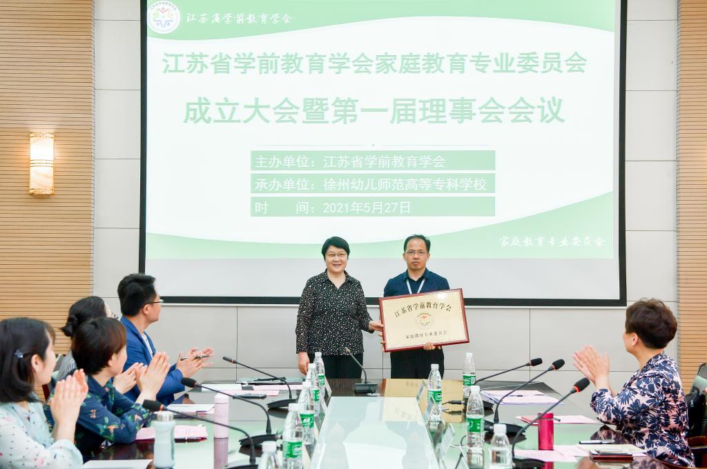 成功召开。省学前教育学会副会长赵桂丽出席会议为家庭教育专业委员会授牌并发表讲话。会议由省学前教育学会副秘书长薛才良主持。中国教育学会家庭教育专委会副理事长杨雄博士、徐州教育局学前办主任韩莹应邀莅临大会。