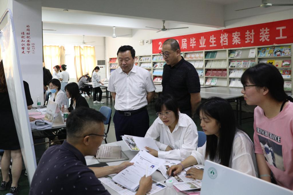 初夏已至,毕业季节来临,又一波实习生、毕业生即将走出校门,工作、实习迫在眉睫。健康服务与管理系经过前期与各企业充分对接与沟通,于6月9日-11日开展了线上企业宣讲会。6月16日上午,线下实习就业双选会在洞山校区二楼阅览室成功举行,校党委委员、副校长邓宪亮,校党委委员、纪委书记王启高以及招就处相关工作人员亲临双选会现场指导工作。来自南京、上海、杭州、苏州等地14家涉老企业参加了双选会,为90余名即将实习的学生提供实习岗位200余个。双选会结束后,2019级同学全部找到合适的实习单位。