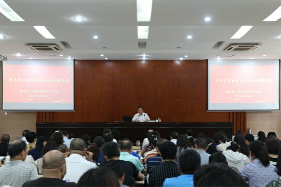 按照党史学习教育方案的统一部署,6月24日下午,校党委书记王晓三在碧螺校区学术报告厅为全体党员上了一堂题为“百年教育路 百年强国梦”的专题党课,市委党史学习教育第十一巡回指导组组长卫道存到会指导。
