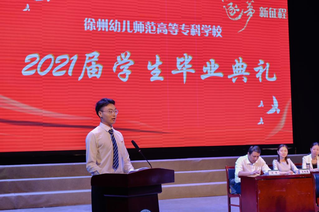 学前与特殊教育学院李媛老师作为教师代表发言。她寄语同学们“把青春岁月融入职业之中,才能换来心灵长久的幸福,才能无愧于这个伟大的时代”。