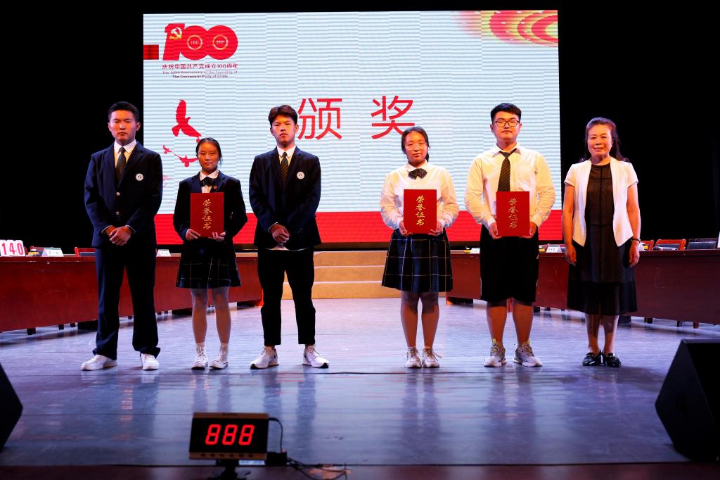 比赛采用现场比赛、现场评比的方式进行。设置了团队介绍、必答题、抢答题、风险题、加时赛五个环节。比赛内容涵盖党的百年奋斗史,融知识性、教育性为一体。团队介绍环节,各团队选手们慷慨激昂、饱含深情,大声喊出团队口号,把现场氛围推向高潮;团队必答题环节,各队你追我赶,势均力敌;抢答题角逐中,选手们精神集中,积极拼抢,风险题竞答时,大家勇敢挑战,互不相让。各支队伍的比分紧咬不下,“火药味”十足。经过一番鏖战,共有三支队伍脱颖而出获得优胜奖。