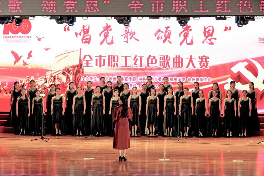 6月16日,来自我市各条战线的职工代表汇聚一堂,参加“唱党歌 颂党恩”全市职工红歌大赛,大赛由徐州市委宣传部、市委市级机关工委、市总工会共同主办,全市共有49支参赛队900余名职工进入决赛。他们用激情嘹亮的歌声,讴歌党的伟业,庆祝中国共产党成立100周年。