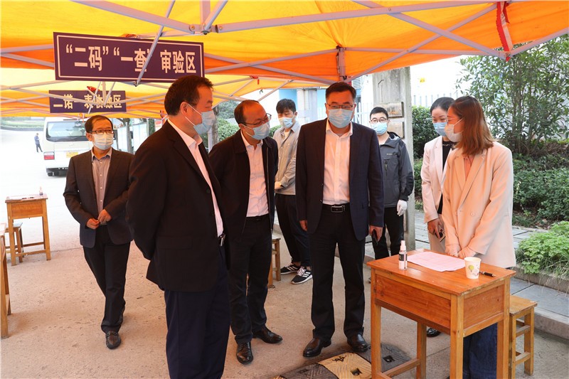 校党委书记崔成前和校长蔡飞带队检查了校门、临时隔离点、学生宿舍等场所,听取了学工处、保卫处等部门就学生返校流程及防疫措施等情况的汇报,询问了一线工作人员有关学生返校工作进展的情况,对党员志愿服务岗的教职工表达了关心和慰问。