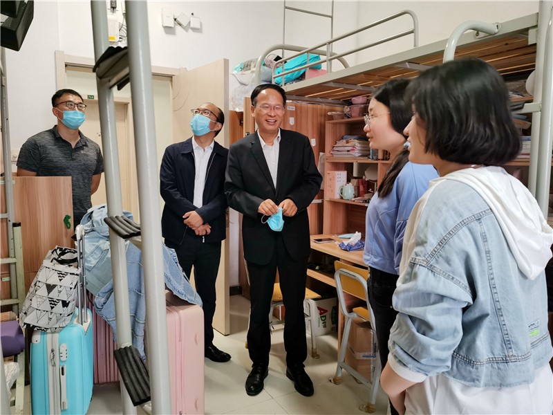 秋季学期学生返校报到工作,10月9日上午,在校领导班子成员到两校区检查学生返校报到情况。