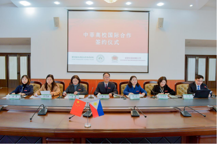 校长蔡飞、菲律宾莱西姆大学副校长玛丽亚·特蕾莎·皮拉皮尔出席。两校相关部门负责人参加了签约仪式。