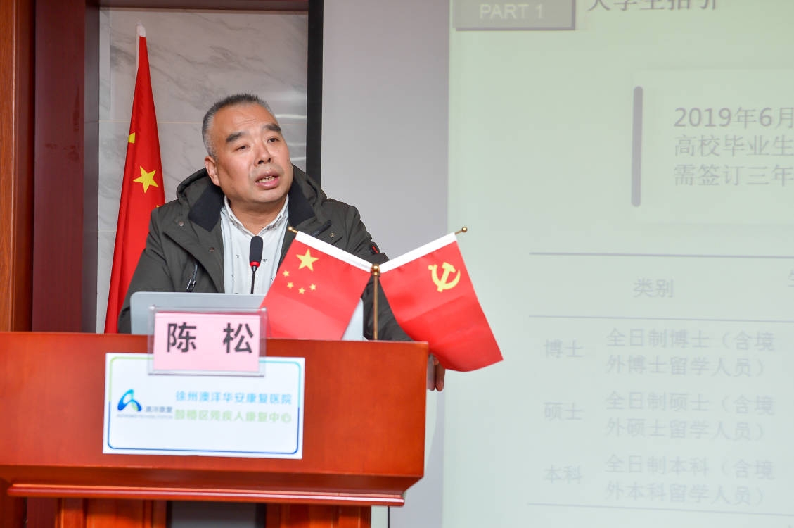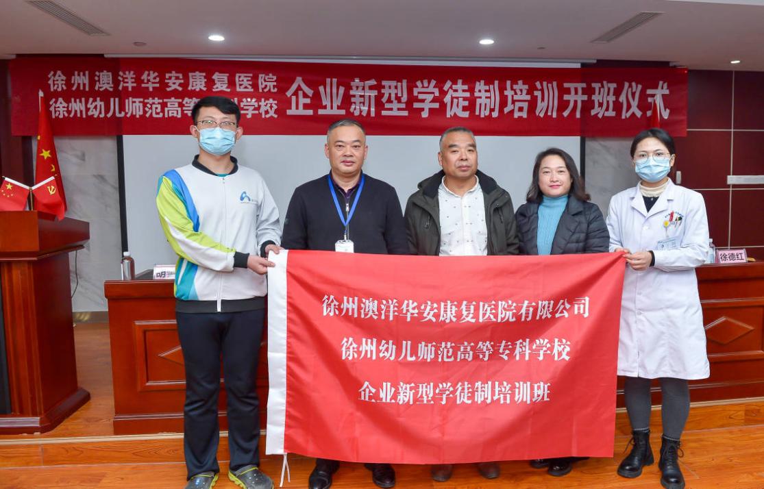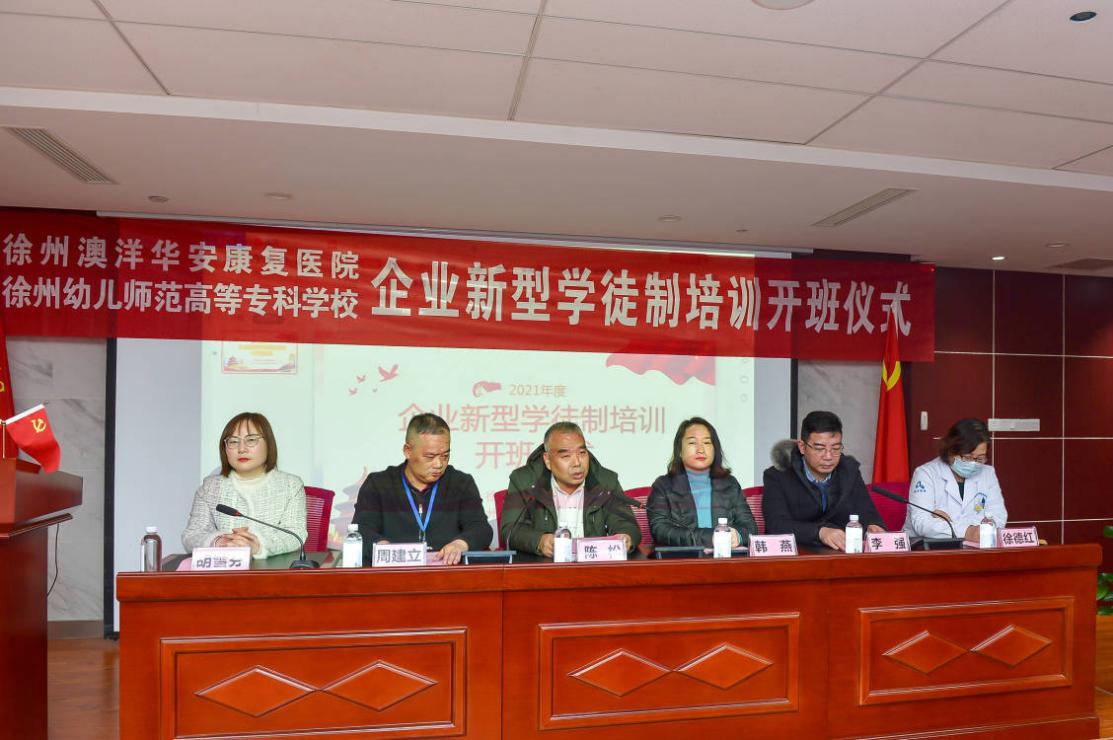 与徐州澳洋华安康复医院联合举办的企业新型学徒制培训班开班仪式在该医院会议室举行。徐州市鼓楼区人力资源与社会保障局人力资源办公室主任陈松,徐州澳洋华安康复医院院长、医院党支部书记周建立,党支部副书记徐德红,糖果派对官方