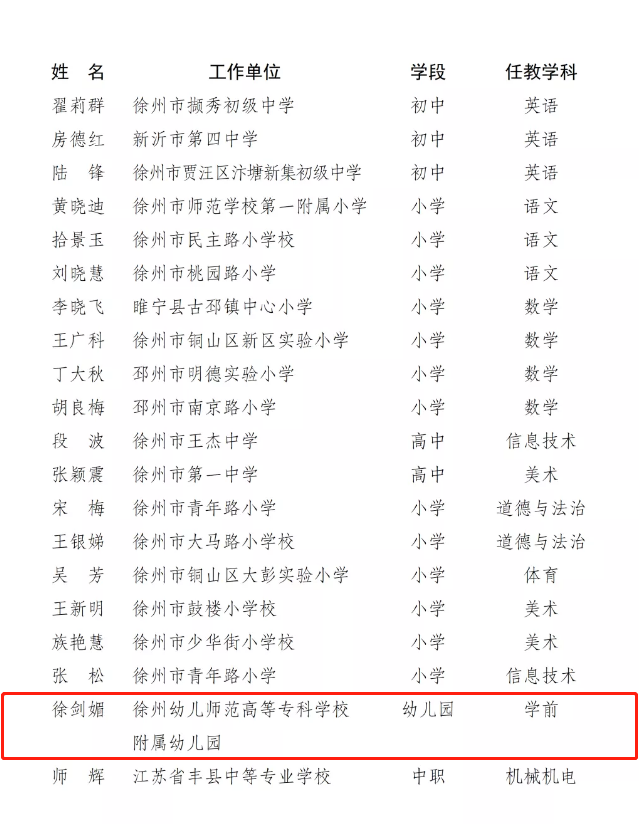 培养的首位特级教师,也是徐州市在本次评选中唯一获此殊荣的学前学科特级教师。