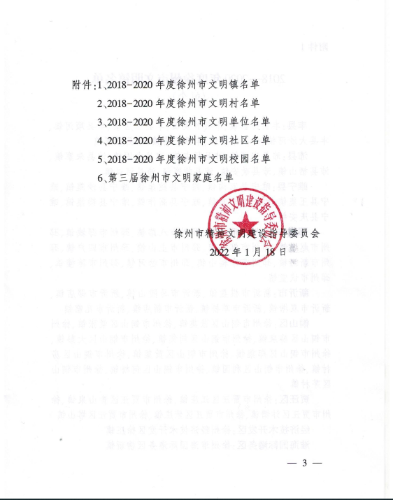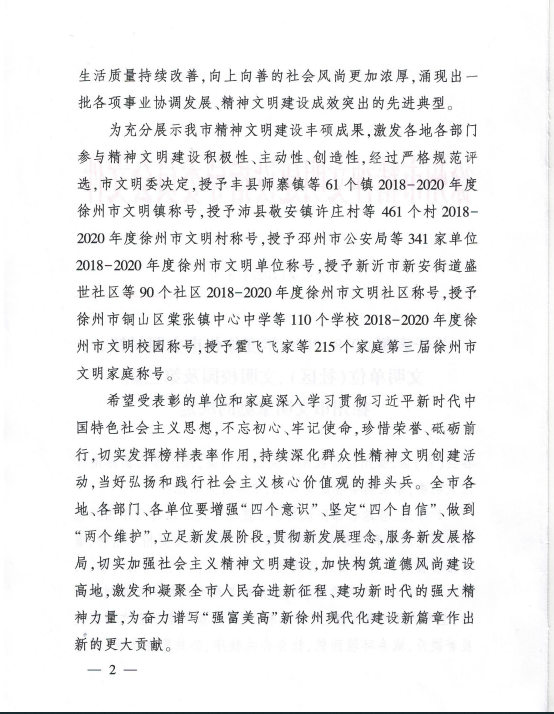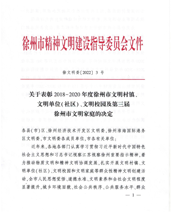 近日,徐州市精神文明建设指导委员会下发《关于表彰2018-2020年度徐州市文明村镇、文明单位(社区)、文明校园及第三届徐州市文明家庭的决定》(徐文明委〔2022〕3号),糖果派对官方