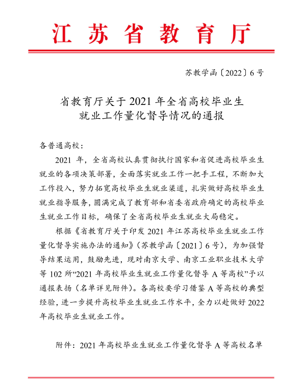 3月15日,江苏省教育厅对2021年全省高校毕业生就业工作量化考核A等高校通报表扬,糖果派对官方