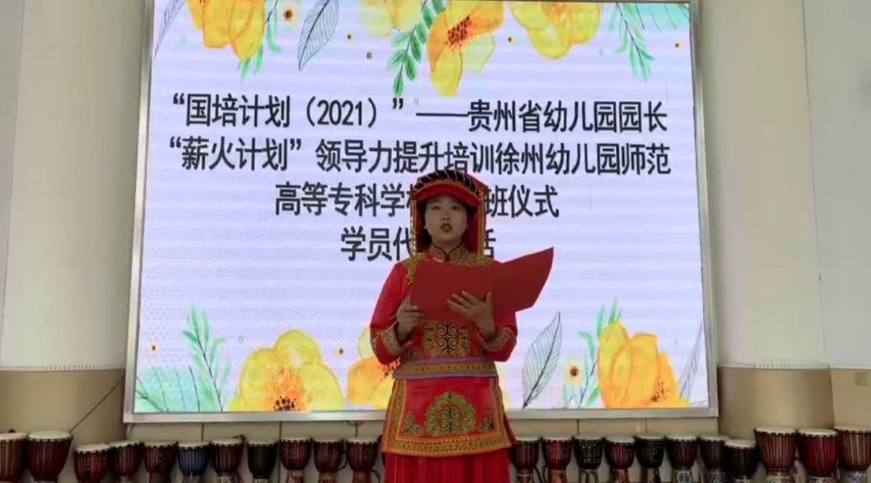 陕西省西安市第八保育院郑竞翔、贵州省毕节市大方县第一幼儿园徐映曌分别代表两省全体学员发言。