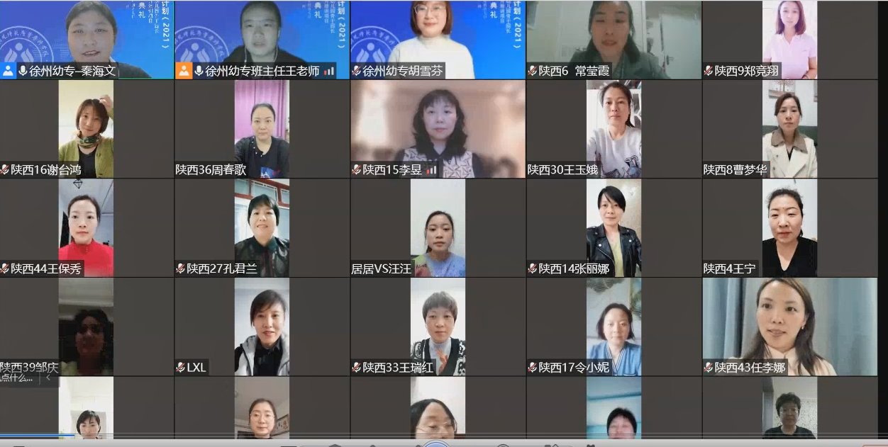 校长蔡飞,班主任老师以及来自陕西省、贵州省共220余名国培学员齐聚云端参加开班典礼。典礼由继续教育学院副院长胡雪芬主持。