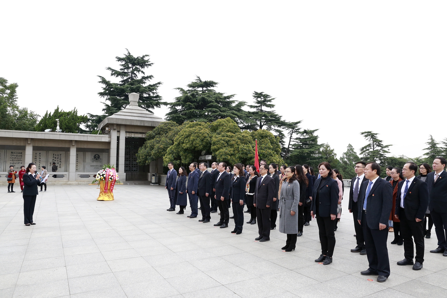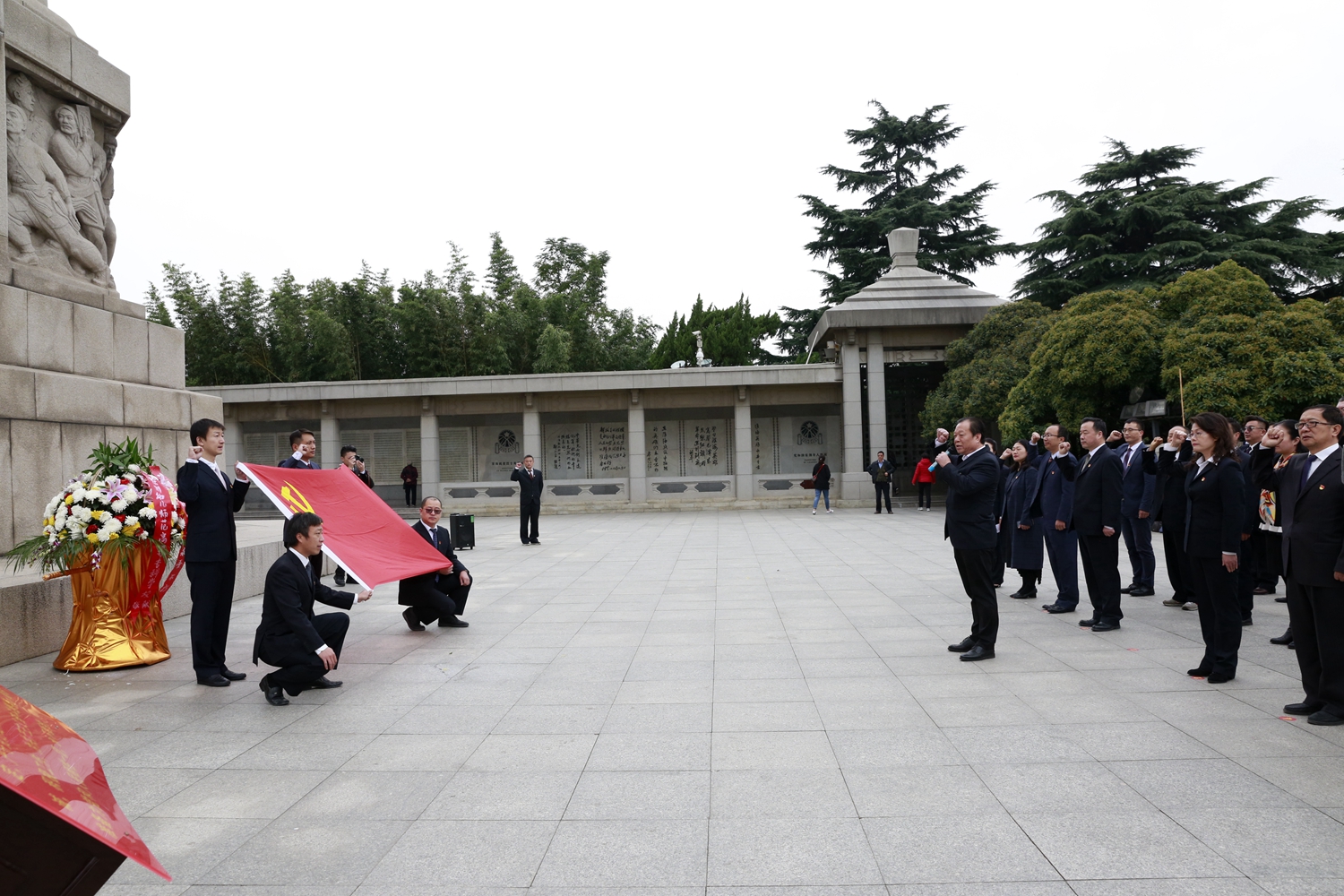 全体人员身着正装,佩戴党徽,在淮海战役烈士纪念塔前庄严列队,齐唱国歌,敬献花篮。在党委书记王晓三带领下集体宣誓,重温入党誓词。高大巍峨的烈士纪念塔在蓝天白云下显得愈发挺拔,铿锵有力的誓言回荡在苍松翠柏间,此情此景使每个党员深受震撼。