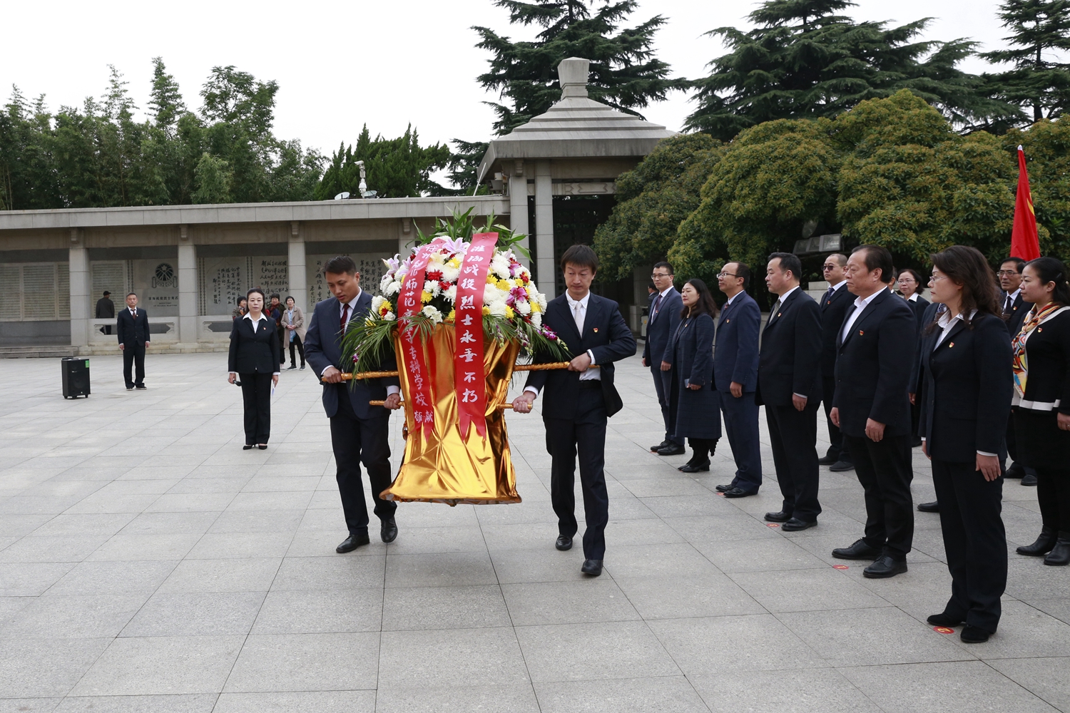 党员干部到淮海战役烈士纪念塔,开展“不忘初心、牢记使命”主题教育“四重四亮”活动,重温入党誓词。部分学生党员参加活动。