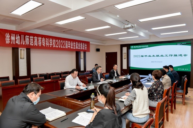 关于2022届毕业生就业创业工作推进方案》;学前与特殊教育学院党总支书记李海芸和健康服务与管理学院辅导员李艳萍分别作为学院代表和辅导员代表发言,交流典型做法和就业指导工作经验。