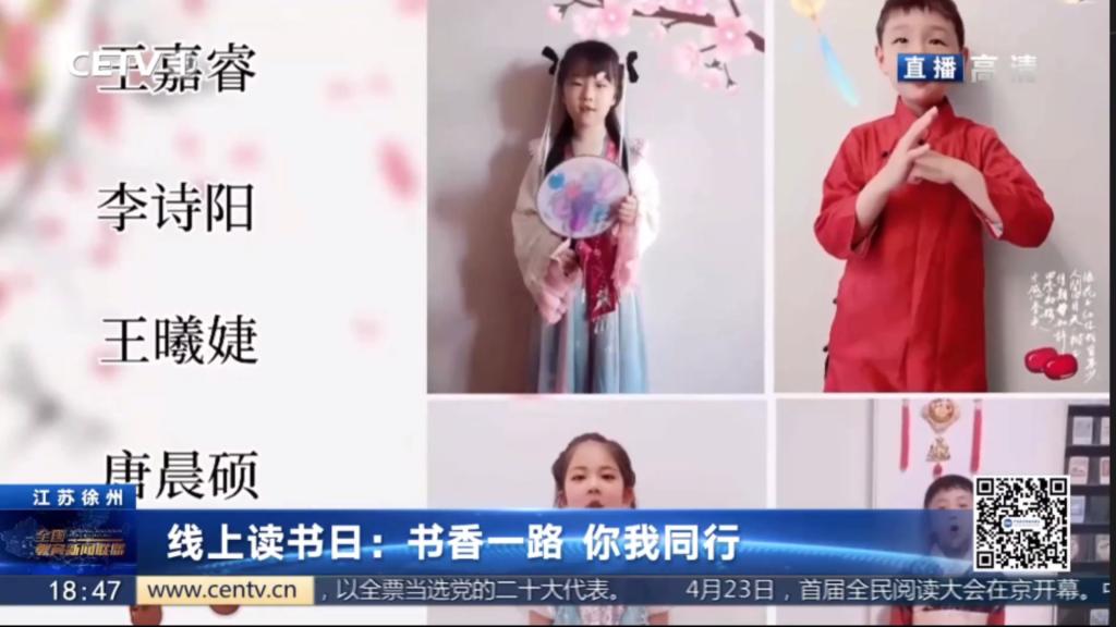 国家语言文字推广基地举办的“书香一路 你我同行”线上读书日主题活动。中国教育电视台官微同步推送了播出视频。推普助力乡村振兴公众号转发了糖果派对官方