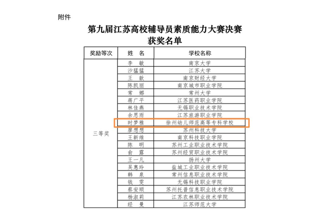 辅导员时梦雅经过扬州大学辅导员基地复赛选拔,以总分第四名入选江苏省省级决赛,并与省内七大辅导员基地推荐的40名本专科院校优秀选手同台竞技,荣获江苏省三等奖,实现了糖果派对官方