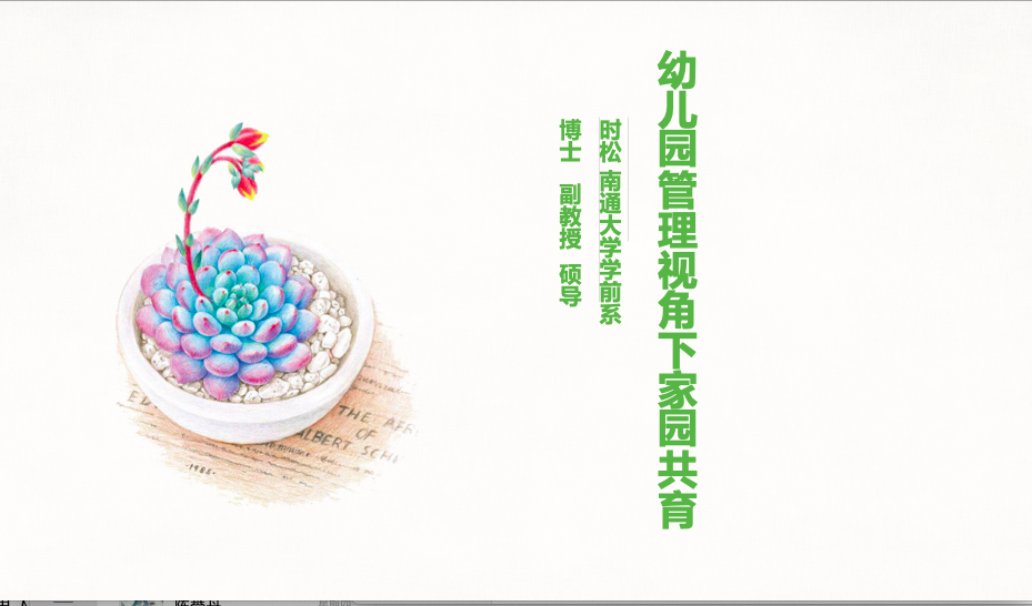 南通大学教育科学学院学前教育系时松博士作了“幼儿园管理视角下的家园共育”的报告,他指出开展幼儿园家长工作能充分利用家长资源,发挥家庭教育的优势,使家园配合一致,共同促进幼儿健康成长。幼儿园开展家长工作需要遵循平等性、尊重性、经常性、个别性、预见性、制度化、全面性、专业性等原则。