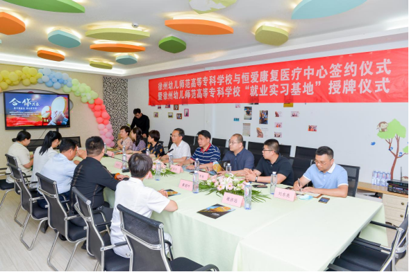 经过深入交流,校企双方在教学实践、实习实训、就业对接、校企合作等方面达成合作共识,招生就业工作处处长张东与徐州恒爱儿童感统训练中心副董事长胡秀云现场签约,蔡飞为徐州恒爱感统训练中心就业实习基地授牌。徐州幼专将以用人单位需求为导向,加快教育体制改革,加快人才培养体系的搭建,实现产教融合、协同育人、精准对接,建立一批稳定、高质量的就业实习基地,全力提高大学生就业质量。