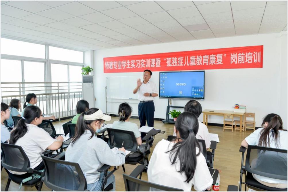 校长蔡飞教授为关爱中心康复教师及徐州幼专特殊教育专业学生开办讲座及现场指导。