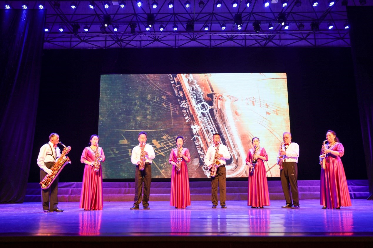 退休教师与在校师生联手进行了歌舞、萨克斯、抖空竹、独舞、女声独唱等精彩表演,充分展示了群众性文体健身成果,博得了场内观众的热烈掌声。