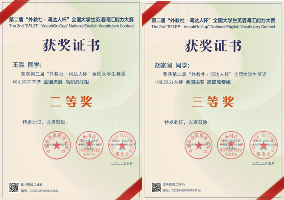 5月28日,第二届“外教社•词达人杯”全国大学生英语词汇能力全国总决赛结束,为期两个月的大赛终于落下帷幕。全国737所院校共计2257名学生参加决赛,外国语学院应用英语专业王淼、英语教育专业胡家润两位参赛选手分别获得全国高职组二等奖和三等奖。