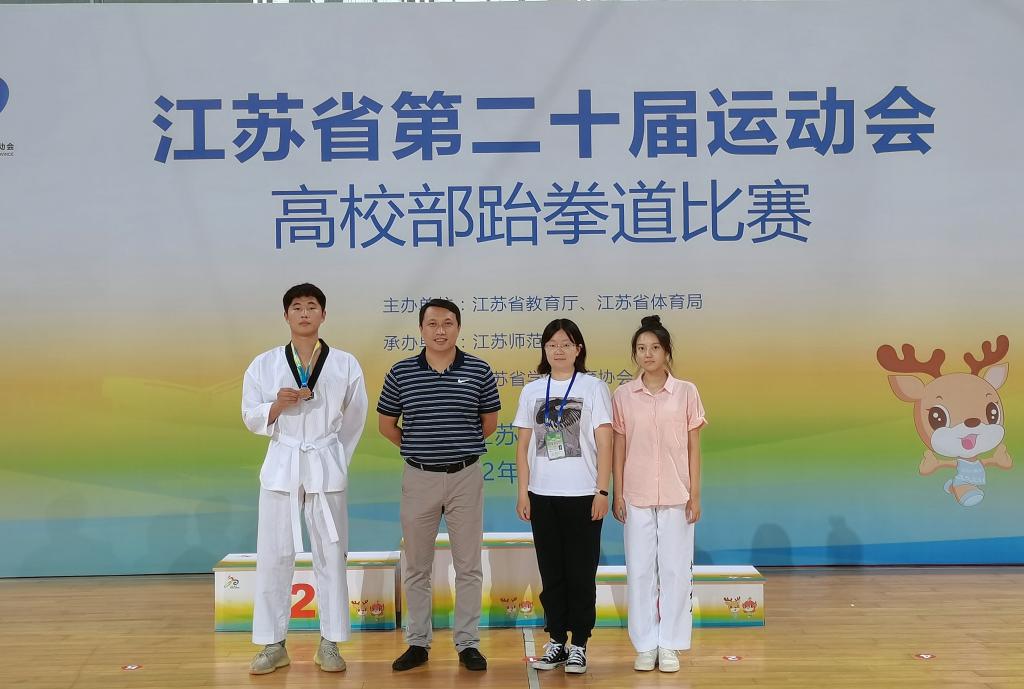 8月3日-7日,由江苏省教育厅、江苏省体育局主办,江苏师范大学承办,江苏体育协会协办的江苏省第二十届运动会高校部跆拳道(乙组)比赛在江苏师范大学开赛。体育学院21级体育教育1班司增鑫同学经过初赛、8进4、半决赛的激烈角逐,获得男子80+kg第三名的优异成绩。