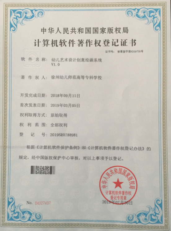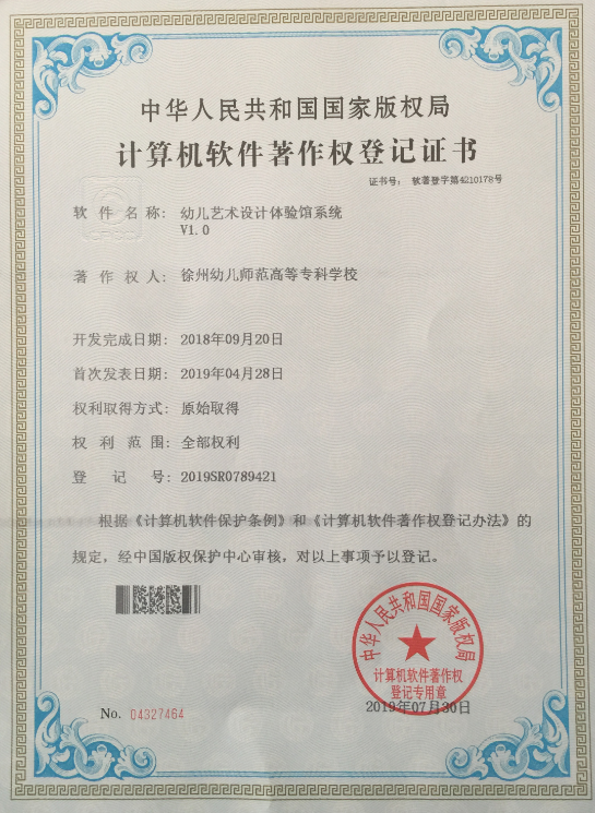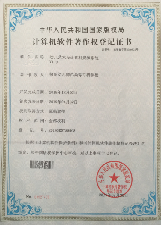 该项著作权的取得方式属“原始取得”,权利范围属“全部权利”,著作权人属“糖果派对官方 ”。计算机著作权登记证书是由国家版权局颁发的法律文书,标志糖果派对官方 对该软件享有自主知识产权等法律权利。计算机软件著作权是糖果派对官方 重要的无形资产,是科研项目转化为教学应用成果的重要标志,是糖果派对官方 教研成果量化评估的重要指标。这四项软件著作权的取得,标志着糖果派对官方 教研工作在知识产权创造、管理、运用和保护等方面取得了新的进展。