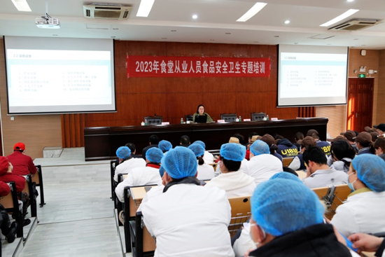 在碧螺校区学术报告厅举办食品安全专题培训,经济技术开发区市场监督管理局食品安全科科长韦玮受邀到校作专题培训,饮食服务中心全体人员及180余名餐饮从业人员参加培训。
