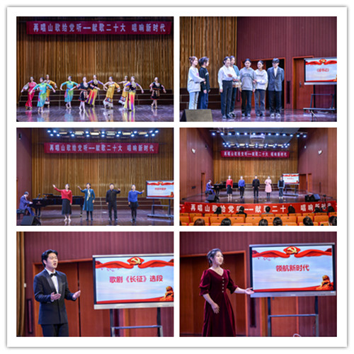 音乐党课“再唱山歌给党听”是音乐舞蹈学院党总支打造的品牌党建系列活动,第一讲由该学院第一党支部书记孙玉柱教授主讲。随着慷慨激昂的音乐响起,熟悉的旋律回荡在耳边,一曲《共筑中国梦》开启了党课序幕。第一支部的四位声乐教师以铿锵有力的歌声,诉说着中国人民的心声与期盼。2022级音乐表演1班王星雨的男生独唱歌剧《长征》选段,用歌声再现了那段“苦难的辉煌”,歌颂了中国工农红军为了共产主义信仰抛头颅、洒热血、不惧艰险、舍生取义的崇高理想信念。以徐州琴书的唱腔和表演形式、结合现代舞台表现手法创新而成的“琴书剧”《迎书记》,真实再现了驻村第一书记带领众乡亲投身乡村振兴事业的感人故事,号召大学生积极投身美好家乡建设。此外,还有师生合唱《不忘初心》、2022级音乐表演1班陈诺的女生独唱《领航新时代》、女生群舞《再唱山歌给党听》……不同的历史时期,不同的经典音乐,在寓教于乐的氛围中,信仰之美和艺术之美完美融合,现场掌声如潮。