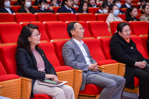 以音乐感悟党史,用歌声铭记初心。3月15日下午,音乐舞蹈学院党总支在洞山校区音乐厅举办“再唱山歌给党听——献歌二十大 唱响新时代”主题音乐党课。校长蔡飞,校党委副书记曹利群,党委委员、组织部长褚香,纪委副书记孟晓慧出席活动,音乐舞蹈学院党政班子及全体党员师生参加活动。活动由音乐舞蹈学院党总支书记丰娴静主持。